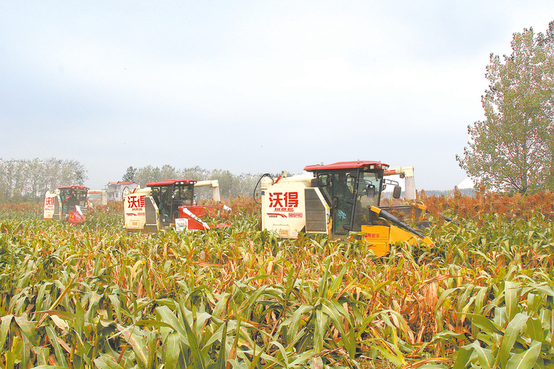 新蔡:高粱红满天 机械收割忙
