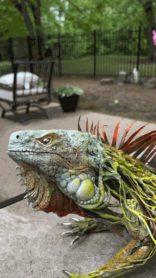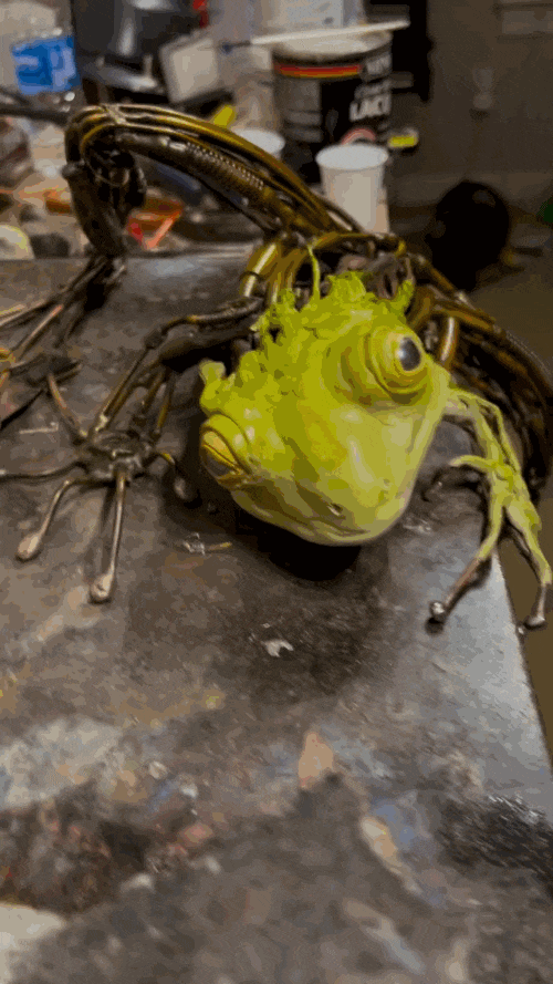 正在以前我发的形形色色的雕塑做品中,大师见过绘声绘色的,见过赛博朋克的,见过废料操纵的,可是把这几种融合到一路的雕塑你们见过吗?